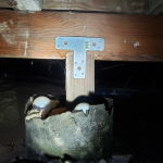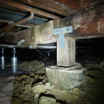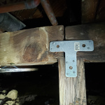 Sometimes the weight of the interior walls actually cause crushing of the beams over posts as shown in these photos.