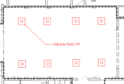 • Install ECP Model 288 helical piers at 8 locations to a depth of 20feet.
